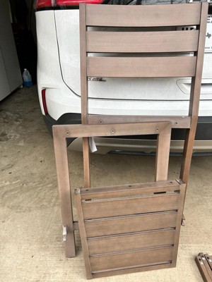 [This review was collected as part of a promotion.] I love how these chairs actually look like wood but won’t age like wood. They fit really well in my house but they would work out side for a bar area. The only reason I gave it 4 stars is because 1 bolt wouldn’t go in due to the holes not aligning.