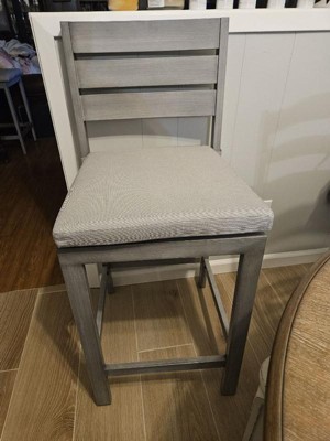 [This review was collected as part of a promotion.] The Martha Stewart Bedford Bar Stools demand a moderate level of assembly effort and patience, due to the misalignment of several holes (as shown in the photo). However, once assembled, the stools prove to be aesthetically pleasing. The grey, wood-grained finish adds a touch of elegance, while the adjustable feet ensure effortless leveling. The cushions, although initially firm, are anticipated to become more pliable with use. Furthermore, maintenance is simplified via cleaning with a damp cloth. Overall, this is a nice set, albeit marred by the issue of misaligned holes, which necessitated a 4-star evaluation.