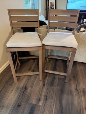 [This review was collected as part of a promotion.] These stools look awesome—love the woodgrain finish on the aluminum, and they’re super sturdy but still lightweight. The cushions are comfy and hold up great in all weather. I’ve used them outside and even tried them at my kitchen island—they work great in both spots. Only small downside is the cushions can slide a bit, but nothing major. Overall, stylish, comfy, and built to last. Solid product!