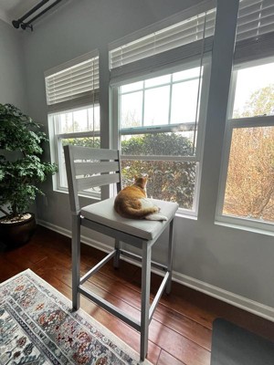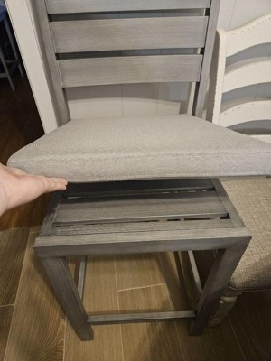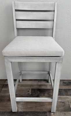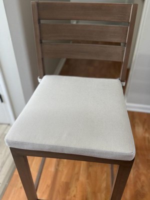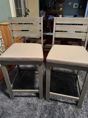 [This review was collected as part of a promotion.] The Martha Stewart Bedford Bar Stools demand a moderate level of assembly effort and patience, due to the misalignment of several holes (as shown in the photo). However, once assembled, the stools prove to be aesthetically pleasing. The grey, wood-grained finish adds a touch of elegance, while the adjustable feet ensure effortless leveling. The cushions, although initially firm, are anticipated to become more pliable with use. Furthermore, maintenance is simplified via cleaning with a damp cloth. Overall, this is a nice set, albeit marred by the issue of misaligned holes, which necessitated a 4-star evaluation.