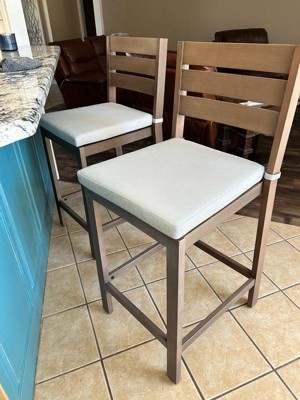 [This review was collected as part of a promotion.] I was looking for bar height stools for a long time and just never could find anything that would go with my decor or color scheme until now. The brushed wood grain look these give have completely transformed my kitchen and given that finishing touch I have been needing. My husband had these put together and was very easy to assemble. The thick cushions that come with these are very nice and give you a comfortable feel. These will last a very long time both indoors and out.