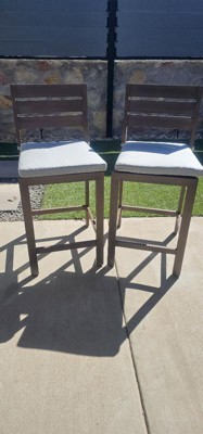 Martha Stewart Bedford Set of 2 Indoor-Outdoor Patio Bar Stools with Gray Brushed Woodgrain Aluminum Finish and Gray All-Weather Seat Cushions