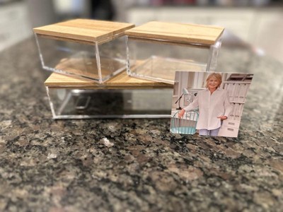 [This review was collected as part of a promotion.] I love these little bins. They will look great on my desk and help keep some small items organized. The bins are made of clear acrylic with real wooden lids. They feel durable and the lids fit very well. I highly recommend!