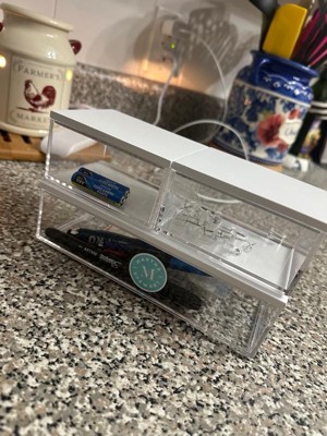[This review was collected as part of a promotion.] I received this product for free in exchange for an honest review! I adore this Martha Stewart plastic clear storage organizer! I use it for my desk to store pens, stickers, and note cards. It makes my area look so cute and tidy! It’s a great spot to put decor on top of as well to spice up your desk. It comes with sticky gel pads to put on the bottom of the corners of the containers so that they don’t slip and slide. It’s the perfect size for your small and medium items that need a home. I would purchase this item, or more from Martha Stewart’s collection in the future!