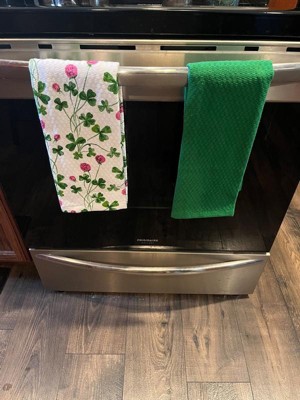 [This review was collected as part of a promotion.] These kitchen towels are impressively absorbent, making dish drying and spill cleanup a breeze. Even after multiple washes, they hold up exceptionally well, maintaining their softness and shape. The St. Patrick's Day design adds a festive touch, featuring charming watercolor clovers alongside a vibrant solid green pattern. A practical and stylish addition to any kitchen. I would recommend these cute absorbent cotton towels to others.