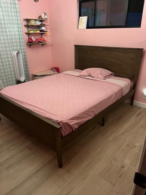 [This review was collected as part of a promotion.] It’s a nice color of oak wood and great quality bed frame. It’s not easy to assemble the frame. Two of us spent 2 hours to put it together. One thing I don’t like is that they don’t have numbers or letters on each part. So it took us quite a while to figure it out which is which. Besides that, it’s still a great bed frame.
