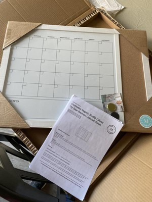 [This review was collected as part of a promotion.] I work from home and needed a dry erase board. I love how this one is calendar AND has a spot for notes! In addition, there is a decent sized cork space to pin extra paper memos. All of this, and it’s magnetic! There are even fancy black and gold magnets and pins. My only complaint is that I thought it was unfinished wood which would be paintable. It isn’t—it’s a veneer. Had I known, I would’ve chosen the darker color.