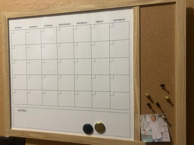 Martha Stewart Dry Erase Magnetic Monthly Calendar/Cork Board-Lt Natural Woodgrain Frame-24x18