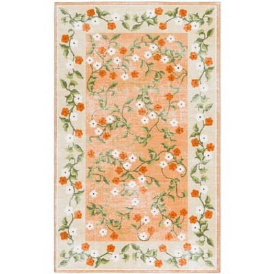 Martha Stewart Floral MSRW186 Machine Washable Skid-Resistant Power Loomed Indoor Accent Rug - Beige/Red - 3'x5'