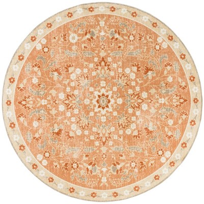 Martha Stewart Floral MSRW187 Machine Washable Skid-Resistant Power Loomed Indoor Area Rug - Dark Beige/Light Blue - 6' Round