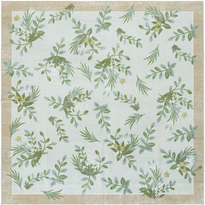 Martha Stewart Floral MSRW189 Machine Washable Skid-Resistant Power Loomed Indoor Area Rug - Beige/Light Green - 6'x6'