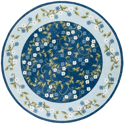 Martha Stewart Floral MSRW194 Machine Washable Skid-Resistant Power Loomed Indoor Area Rug - Blue/Beige - 6' Round
