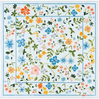 Martha Stewart Floral MSRW194 Machine Washable Skid-Resistant Power Loomed Indoor Area Rug - Blue/Beige - 6'x6'