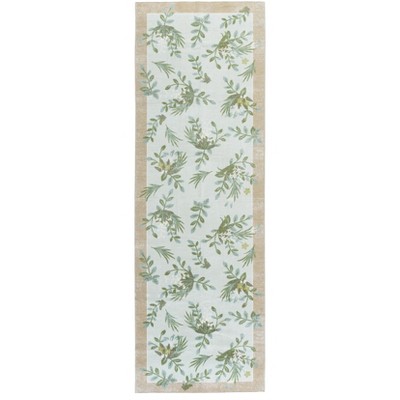 Martha Stewart Floral MSRW198 Machine Washable Skid-Resistant Power Loomed Indoor Runner Rug - Ivory/Light Blue - 2'6"x8'