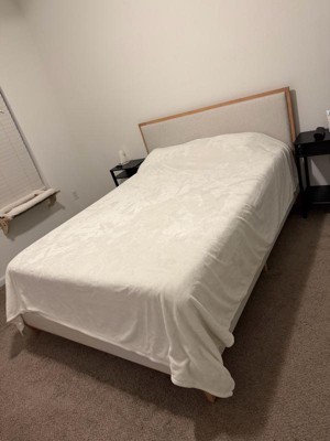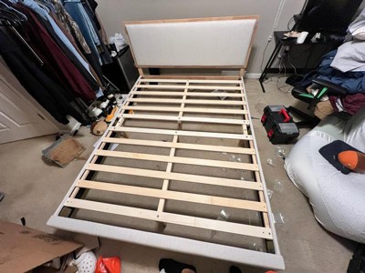 [This review was collected as part of a promotion.] The solid wood platform frame feels sturdy and supportive. Love that no boxspring is required, it’s a reliable base for a mattress. The light wood and white fabric upholstery gives the bed a clean, modern, and elegant look. It’s great for minimalist or contemporary bedroom décor. The upholstered headboard adds a bit of softness and comfort, compared with a bare wood headboard. Great if you want a bed frame that looks modern and stylish, offers solid support without a box spring, and adds a comfortable, soft headboard