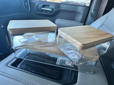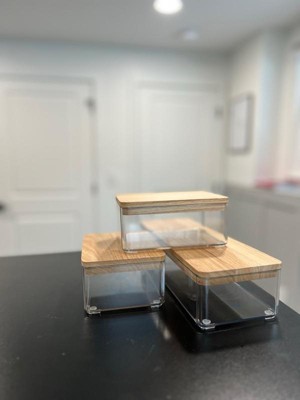 [This review was collected as part of a promotion.] I love the bamboo tops, and the organizers themselves are a really great size for my desk. I also like that they’re clear so I can see what’s in them without having to open them up. Would totally buy any matching items that would go with these.