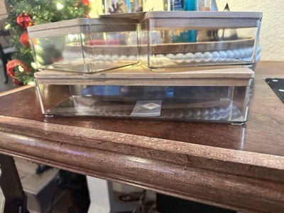 [This review was collected as part of a promotion.] Love these little boxes. The white lid looks more polished than just clear. They’re a good size and I like that you can stack them. Perfect for kitchen or bathroom.