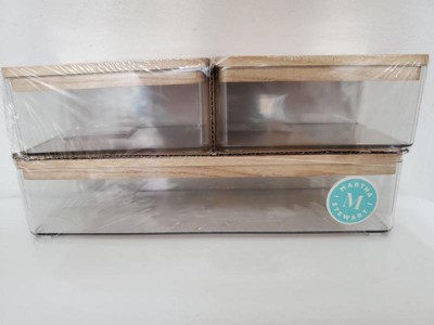 Product Name: Martha Stewart Grady Set of 3 Clear Plastic Stackable Storage Boxes with White Plastic Lids