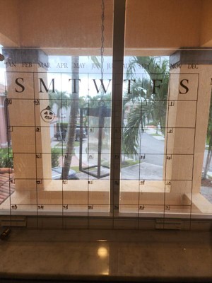 [This review was collected as part of a promotion.] We have an extremely busy family. I installed this calendar in our kitchen and we now keep track of everyones schedules there. I found that chalk markers work really well so we have a different color chalk marker for each person and then write their activities in with that color. It helps us see, at a glance, if we are busy and who's activity we are busy with.