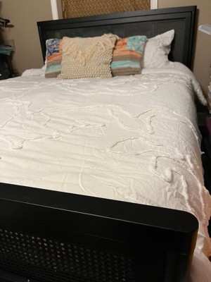 Product Name: Martha Stewart Jax Queen Size Solid Wood Platform Bed with Rattan Headboard and Footboard, No Box Spring Required, Black