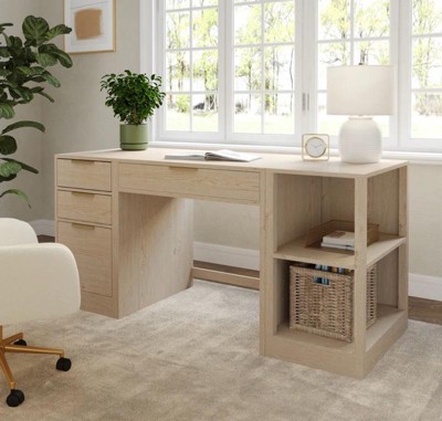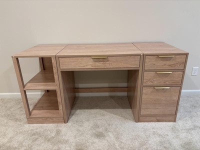 [This review was collected as part of a promotion.] The design is clean, modern, and incredibly versatile — it fits perfectly in my space and really elevates the look of my home office. The storage is so well thought out — the combination of drawers, shelves, and a center pull-out drawer makes it easy to keep everything organized and within reach. The file cabinet is especially great with its customizable drawer that holds both letter- and legal-size folders. The natural wood finish is beautiful and goes with almost any decor.