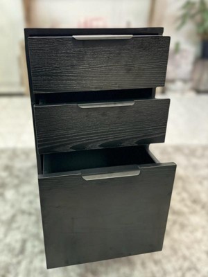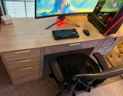 [This review was collected as part of a promotion.] This desk comes in three boxes. We never received the third and most important piece which is the desk part. So we had two of the file cabinet ends. The drawers are nice and use a heavy duty wood. One side alone is around sixty pounds. The wood grain design is nice looking and the cabinet looks stylish and modern.