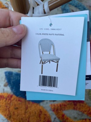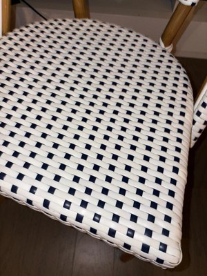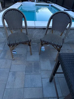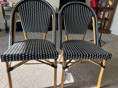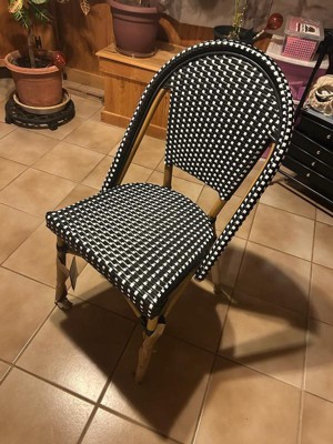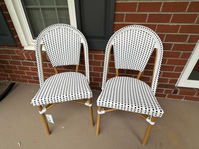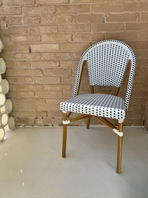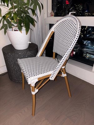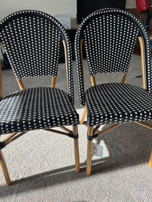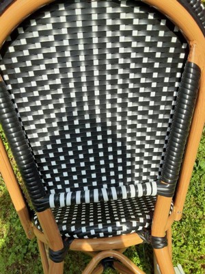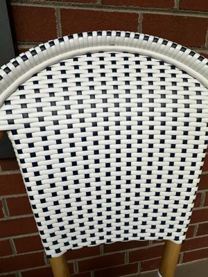 Martha Stewart Lily Pond Indoor-Outdoor Stackable Bistro Chair with Natural Woodgrain Aluminum Finish Frame and Black/White Woven Rattan Back and Seat