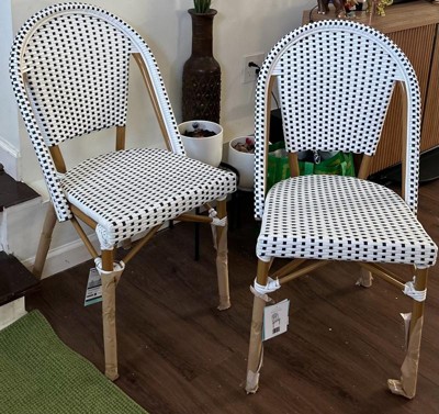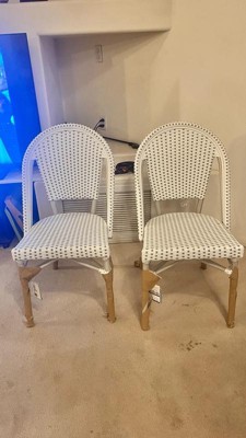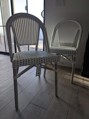 [This review was collected as part of a promotion.] These chairs by Martha Stewart are so cute! These are in the gray and white color. It comes as at set with two chairs. These really make the space you are working with feel like it went through an upgrade. They are super lightweight and easy to move around as well. They have like a woven rattan pattern which is so cute. Highly recommend checking this set out!