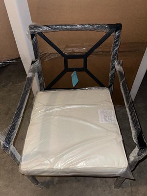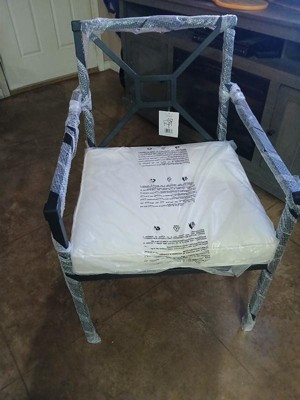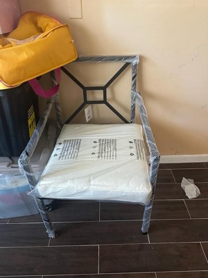 [This review was collected as part of a promotion.] This outdoor furniture chair is great! It comes already assembled. The chair is sturdy and easy to clean. The cushion is comfortable and stiff. The back is surprisingly comfortable for not having a cushion and being metal rods. The chair is stylish and would go with a simple set up or a fancier setup.