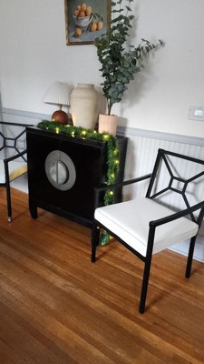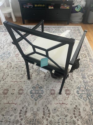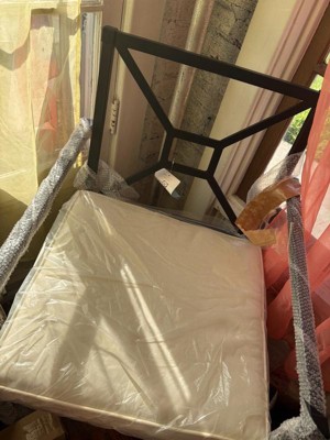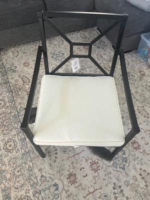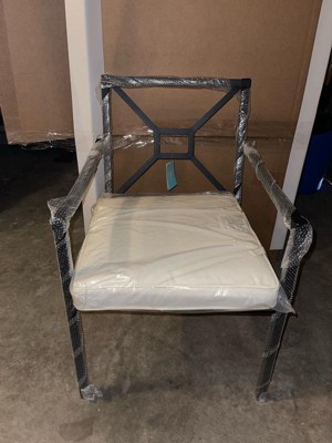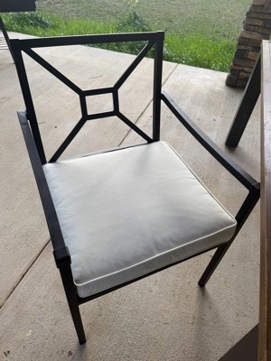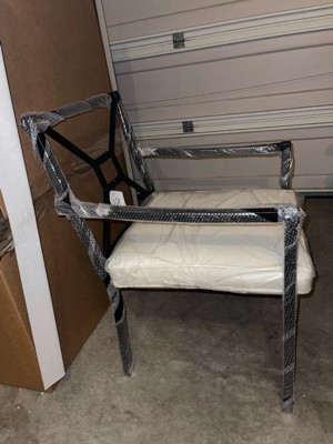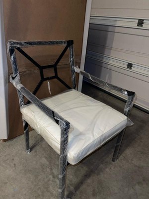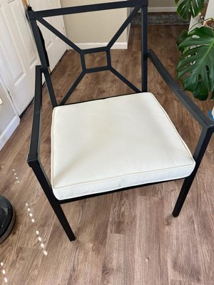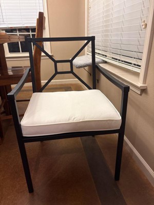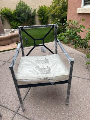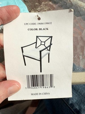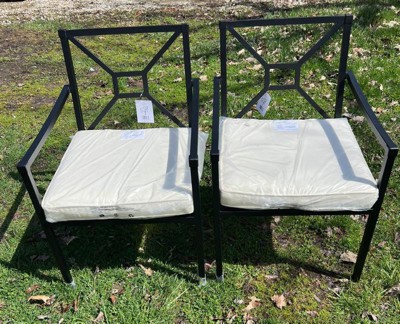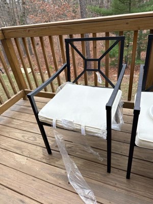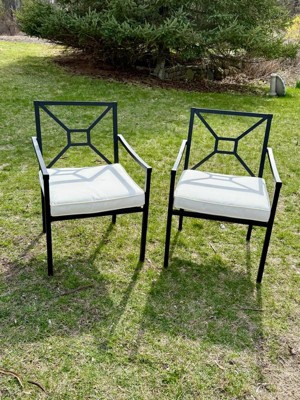 Martha Stewart Lily Pond Set of 2 Indoor-Outdoor Stackable Patio Dining Armchairs with Steel Frames in Black with Cream All-Weather Cushions