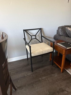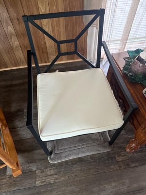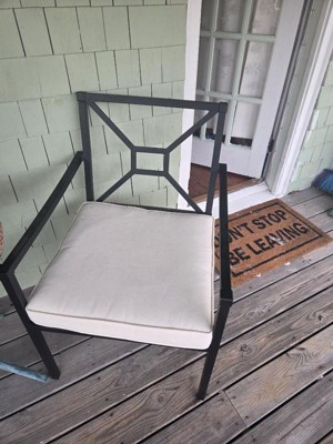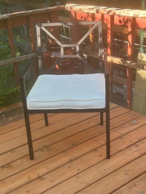 [This review was collected as part of a promotion.] The presentation of these chairs is gorgeous. They have a lovely depth and width to the seat that is friendly for a lot of sizes. Cushion is pretty thin though. And the metal back looks gorgeous but needs a pillow, imho. It is not comfortable to lean against for long periods of time. For the price point, I would expect a little better design. On the plus side, it has been outside for quite a while and looks amazing! So I am very pleased with its durability so far. If this chair had a back cushion, It would have definitely gotten a higher rating.
