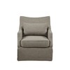 Inspired by Martha Stewart's farm in Bedford, NY, the Martha Stewart London Swivel Chair blends traditional farmhouse armchair charm with modern lounge chair versatility. This elegant accent chair features the woven and durable upholstery, adding a fresh touch to any living room, bedroom, home office and more. A classic skirted bottom hides a 360-degree swivel base, allowing smooth and quiet rotation. Designed for comfort, this armchair includes a loose seat cushion and a lumbar back support pillow with plush foam padding. Quality construction with sinuous springs and elastic webbing ensures durability. Elevate your space with the Martha Stewart London Swivel Chair today!