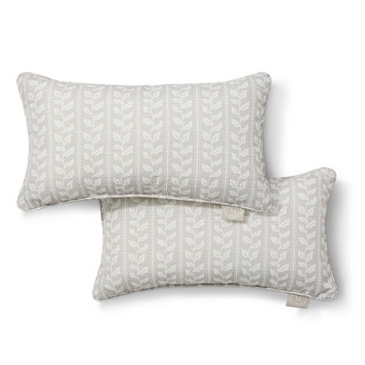 Product Name: MARTHA STEWART Modern Banana Leaves Indoor Outdoor Decorative Lumbar Pillow 2-Pack, UV Fade Resistant, Water Repellent, Warm Grey, 11"x18"