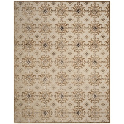 The rug features a sophisticated ivory and brown color palette that exudes a timeless charm. Its pattern is a testament to traditional craftsmanship, showcasing an intricate geometric design that is both classic and contemporary.