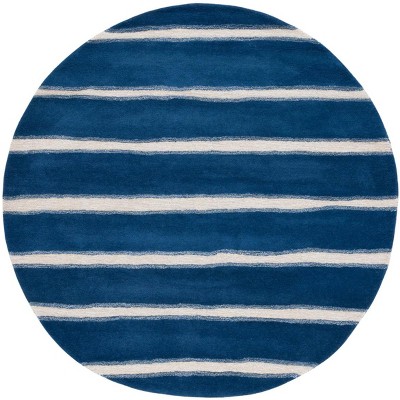 Elevate your space with a touch of understated elegance with our Hand Tufted Round Area Rug in a serene blend of blue and ivory. Expertly crafted in India, this 6-foot diameter rug boasts a modest pile height of 1/4 inch, perfect for sliding under furniture and standing up to high traffic without compromising on comfort. Made of a luxurious mix of 80% wool and 20% cotton, it's both soft to the touch and durable.
