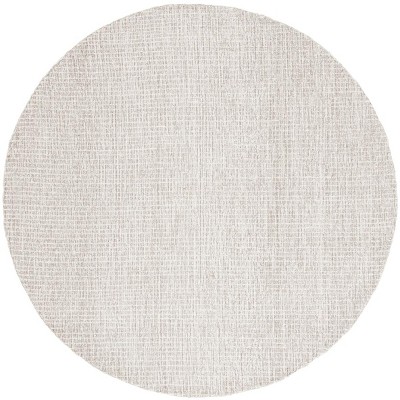 The rug's pattern, as shown in the image, features a delicate interplay of ivory and grey hues, composing a serene floral design that is reminiscent of a tranquil country garden. The round shape of the rug adds a distinctive touch to your space, making it an excellent addition to rooms that benefit from a circular accent piece, such as foyers, living areas, or under round dining tables.