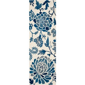 The rug's design showcases a serene palette of azurite blues, cascading into a harmonious mix of florals that breathe life into any setting. With its captivating pattern, the rug draws inspiration from the beauty of nature, with intricate blossoms and foliage that will complement both contemporary and traditional decors.