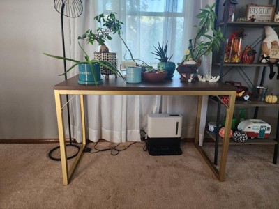 [This review was collected as part of a promotion.] I absolutely love this desk/table. It is the perfect table for my house plants. It was super easy to put together. I love the touch of brass in the legs of the table. It plays well with the wood. The height of the table is great. It is big enough to be a desk in an office as well as a table like I am using it. There is plenty of room if you wanted to have a chair and use it in an office space. It has a sleek and simple look to it. It honestly can go with many decor styles. The quality of the table shows.