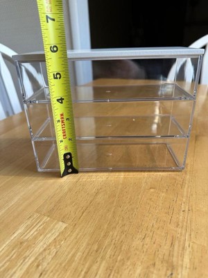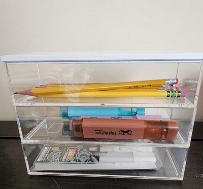 [This review was collected as part of a promotion.] I really was disappointed by this product. I expected that the bins would slide out or be more stable and they’re not. They stack and the only way to get to the bottom bin is to lift both the top bins and the items can easily fall out or the bins could easily break. It’s much smaller than I anticipated so it probably could only hold something like pens. I probably won’t be using this product in my everyday life.