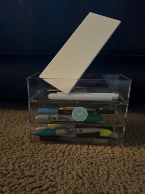 [This review was collected as part of a promotion.] Got this today and it was the perfect size for my desk. It holds my pens and just little Knick knacks I have. It helps not keep my desk all clustered up. Very nice and I like how it has 3 tiers and is clear.