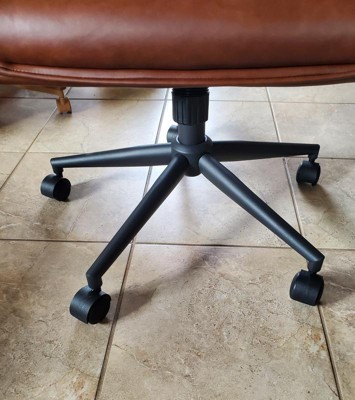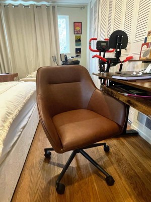 [This review was collected as part of a promotion.] The Martha Stewart Rayna Office Chair is a stylish and easily assembled gem. Its smooth, soft surface provides a luxurious feel, perfect for my home office. The effortless swivel feature adds mobility, making it easy to maneuver. This chair provides height adjustment function which is very beneficial if you have different size individuals in your household who like to share the chair. The lovely brown shade complements any space, making it a delightful and functional addition to my home. I also appreciate how easy the instructions were to follow to assemble the chair. It took me less than 15 minutes to put it all together. This is such a luxurious-looking accent chair. The texture of it feels so soft, and smooth like a leather. This chair perfectly matches to my neutral home office decor, and it is extremely cozy.