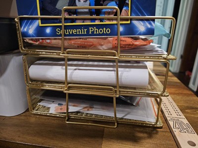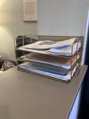 [This review was collected as part of a promotion.] The 3-tier gold letter tray is a stylish and practical addition to any office space. Its elegant design adds a touch of sophistication, while the tiered structure helps with organization. The gold finish not only enhances aesthetics but also adds a touch of glamour to your workspace. Sturdy construction ensures durability, making it a functional and eye-catching accessory for keeping documents and letters organized in a professional setting.