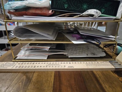 [This review was collected as part of a promotion.] There is a certain aesthetic that the Ryder 3 Tier Gold Desk Letter Tray Organizer adds to my desk. It is light weight, sturdy construction and serves its purpose while creating an organized atmosphere on my desk.