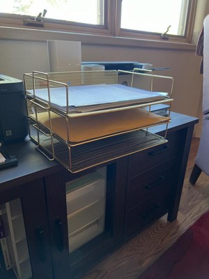 [This review was collected as part of a promotion.] Love love love this desk tray! It’s made it very easy to organize all the papers that usually just pile up at my desk. The gold doesn’t look cheap either, very subtle yet elegant. The trays all stay together well!