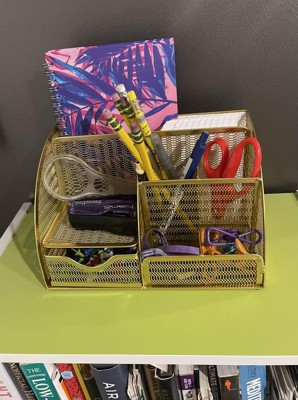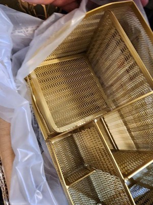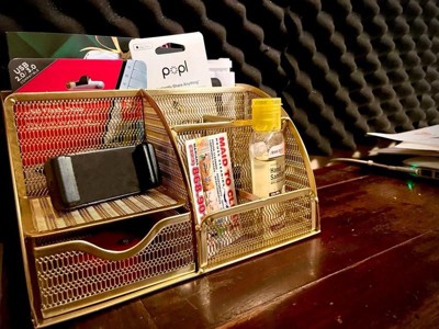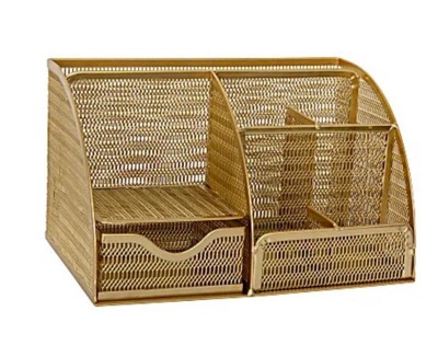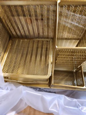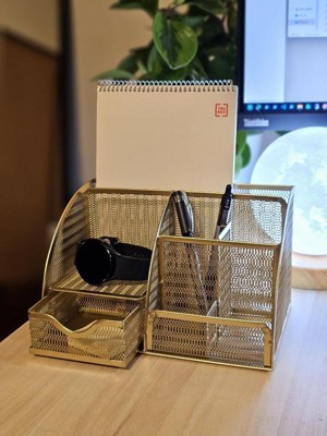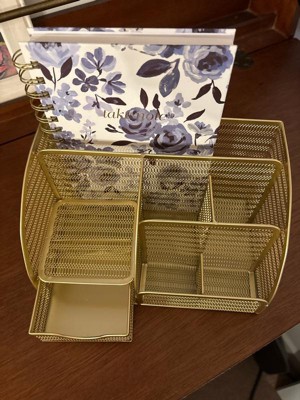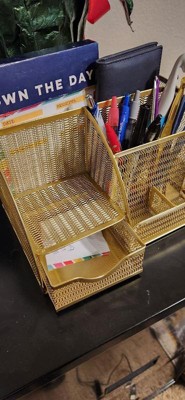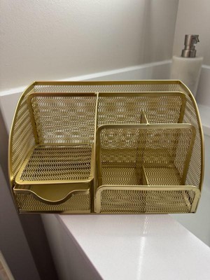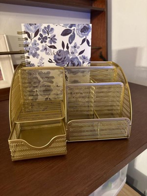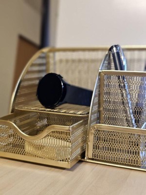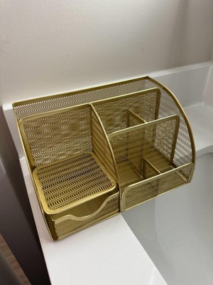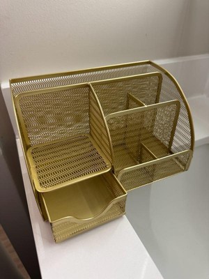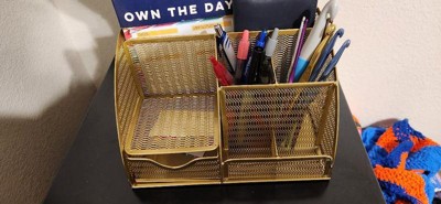 Martha Stewart Ryder Gold Mesh Metal Small Desktop Organizer for Office Accessories, Notebooks, Pen Holder and Drawer