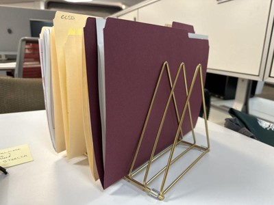 [This review was collected as part of a promotion.] I wanted something that could organize the chaos of mail and school documents on our kitchen island. This file holder has a gold/brassy finish and complements our style really well. It's compact and lightweight, and it has made a huge difference in keeping our counter space tidy. My kindergartener even likes organizing her school papers in it for me!