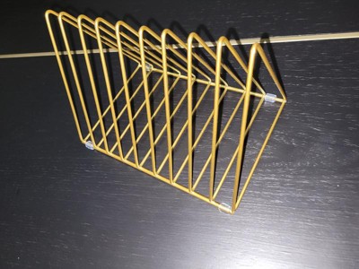 [This review was collected as part of a promotion.] I really like this stylish Gold Metal Triangle Magazine organizer rack. It is really good looking and looks great out with my other gold accents.( Cabinet handles, kitchen faucet, light fixtures... etc) I have it out on the counter up on my open shelving and use it as a pot lid holder too... it's good looking so it can be used out in the open for mail, magazines, "to -do" papers, or pot lid organization piece. LOVE it...