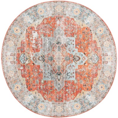 Martha Stewart Traditional MSRW108 Machine Washable Skid Resistant Power Loomed Indoor Area Rug - Turquoise/Rust - 6' Round