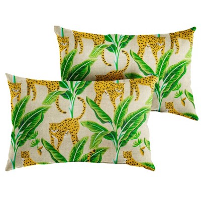 MARTHA STEWART Tulum Indoor Outdoor Decorative Lumbar Pillow 2-Pack Set, UV Fade Resistant, Water Repellent, Printed Modern Design, Green, 11"x18"