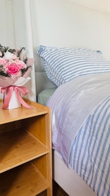 - Versatile Designer Styling. Transform your space with this sophisticated xl / comforter bedding set featuring a soft blue and white stripe. Perfect for curated dorm rooms, charming guest rooms, or luxe bedroom makeovers. This stripe vintage bedding seamlessly complements farmhouse, minimalist, coastal, or cottagecore décor. Creates an instant designer look with its artisan pattern and refined color scheme.